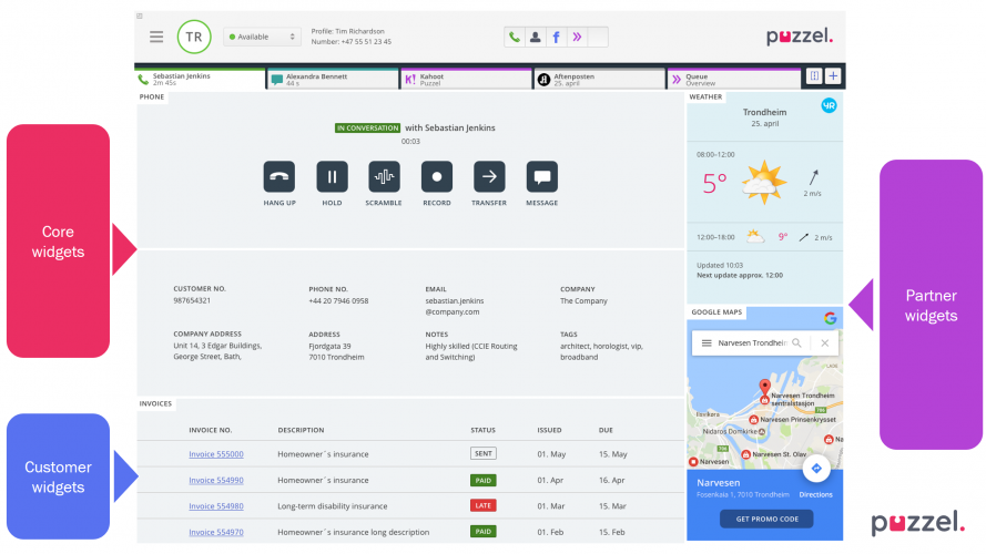 As we launch the new Agent Application, of course it will come with the core widgets that provide essential Puzzel functionality. In addition, we are launching some widgets that provide functionality that goes beyond this to expand what you can do in your contact centre. Most notably, these are our Knowledgebase, ID and Verification (e.g. BankID in Norway), and iFrame modules.