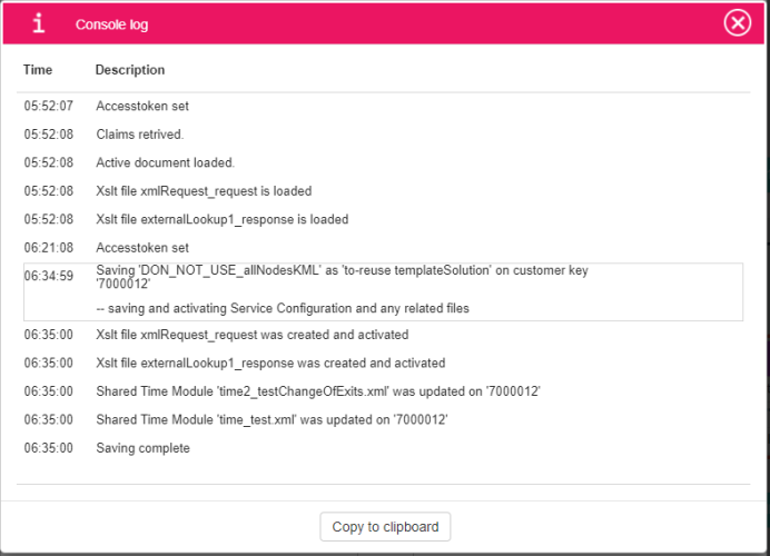 for every SharedTime module from the original customer’s data that does not exist in the target customer’s data - a new file is created in the target customer’s data in sub-folder SharedTimeConfiguration of the page Services=>Editor, which is afterwards immediately activated
