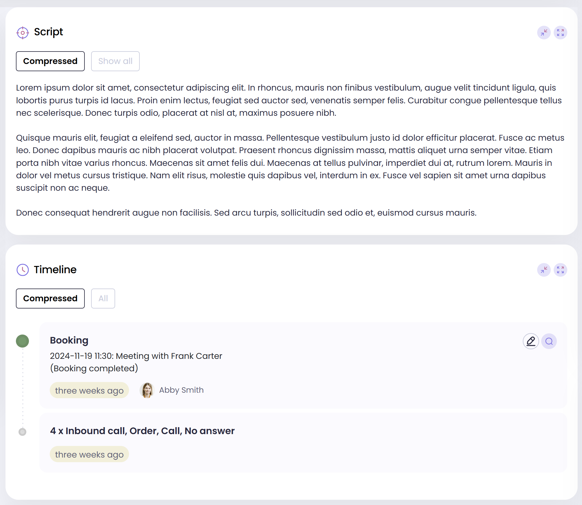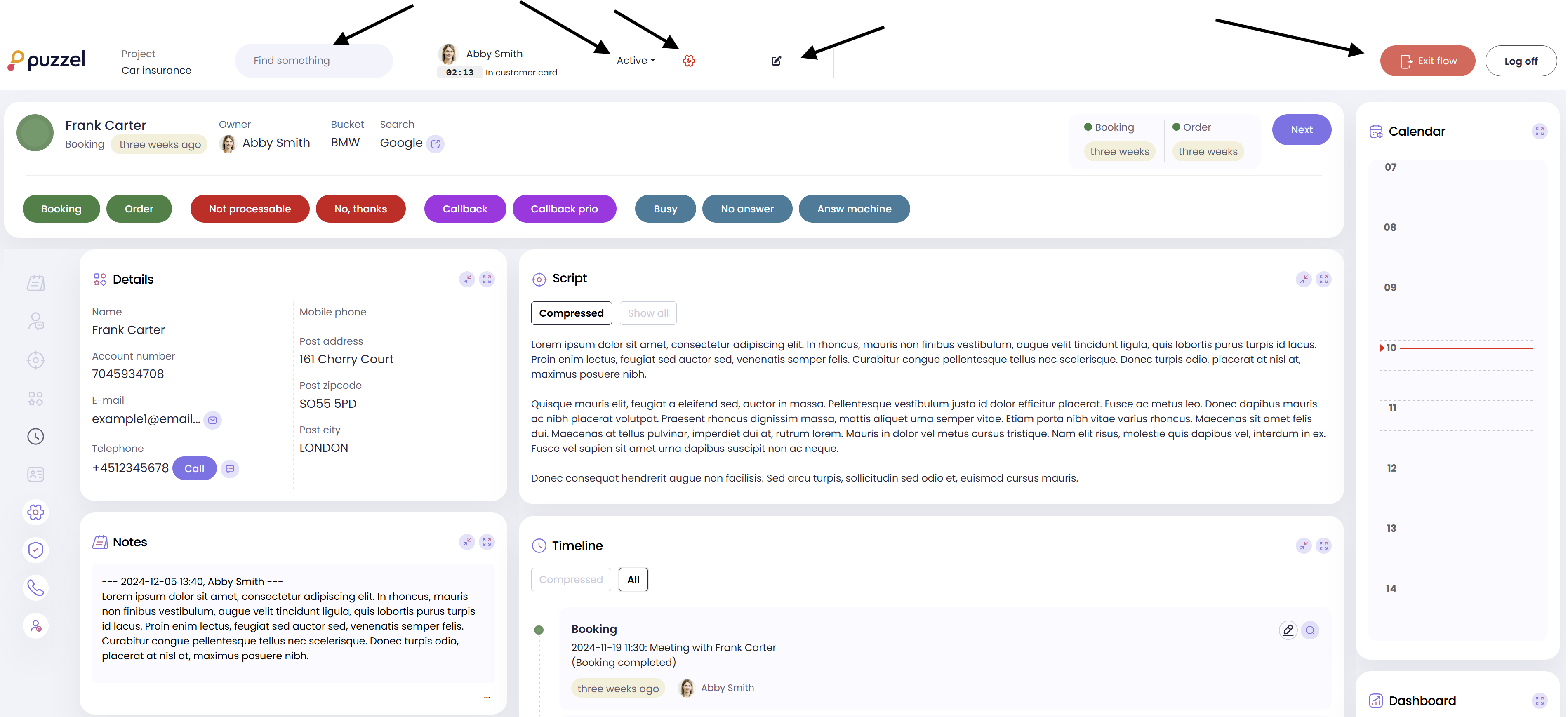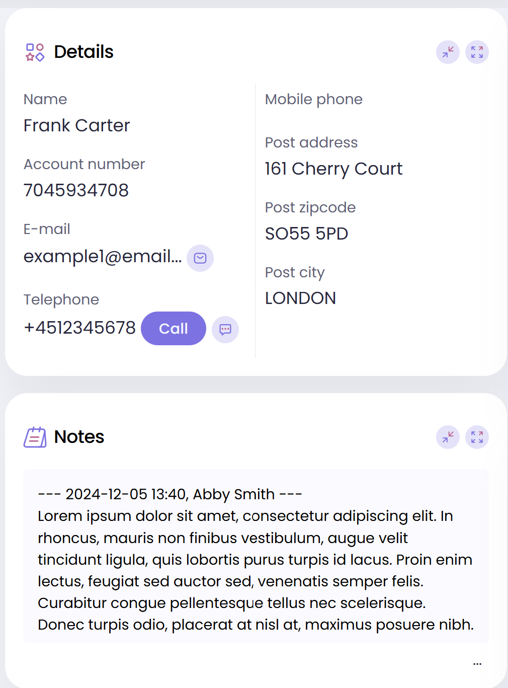 - A dynamic search functionality enables users to quickly locate and switch between different customer cards