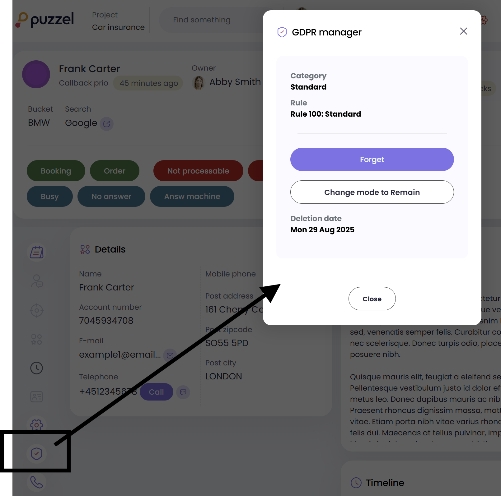 Note: The deletion date is not calculated in real-time. There may be a delay between updating a GDPR-related action and the recalculation of the deletion date.
