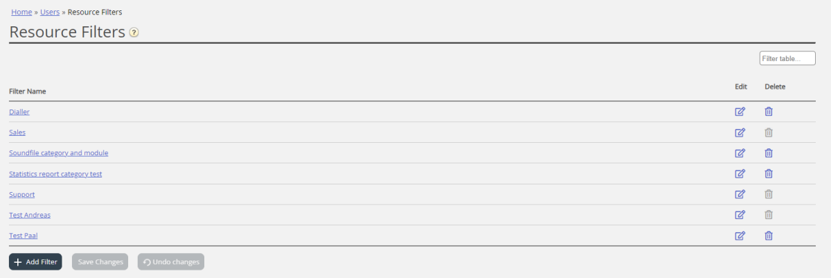 Ressourcefiltre er en del af funktionen til adgangskontrol, som gør det muligt for dig at begrænse visse brugeres eller brugergruppers adgang til forskellige elementer fra forskellige ressourcer som f.eks. visningskøer, brugergrupper, pausevarianter osv., både i administrationsportalen og agentapplikationen. Dette gøres på følgende måde: