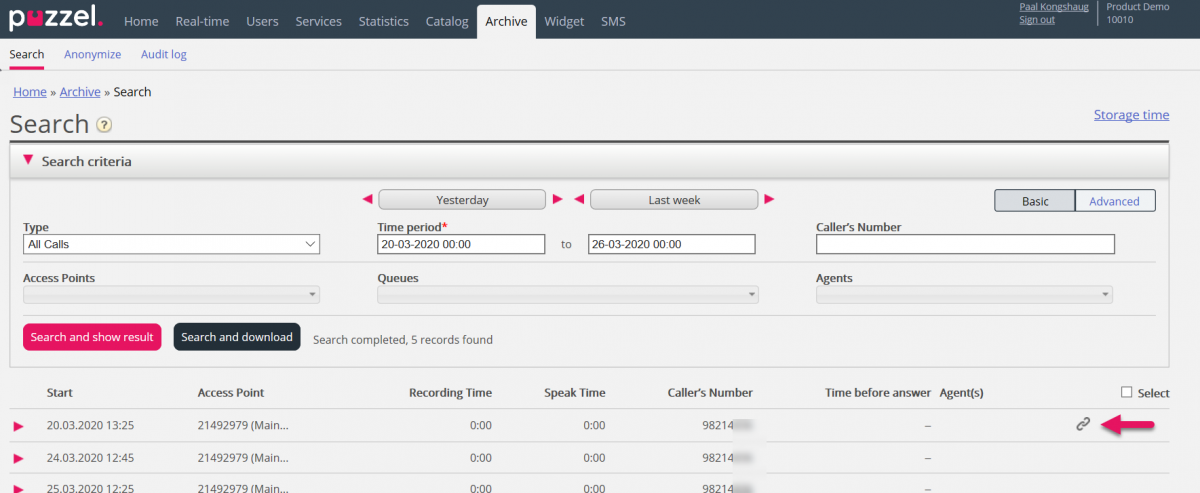 If you click on such a related icon, the Archive searches for and shows this request and its related request(s). If the current request and the related has different media types, the Type listbox shows All media types.
