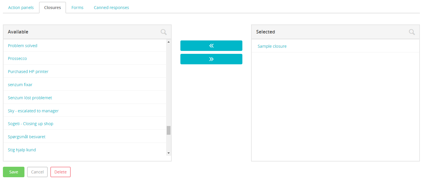 5.  Select the closure/s that would be appropriate for the actions listed above and save it