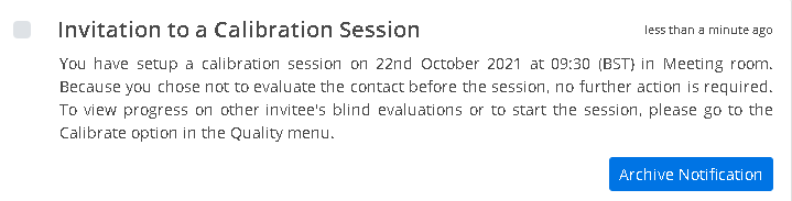 Everyone that's invited will receive a notification that invites them to a session and prompts them to "blind" evaluate the selected contact. The notification includes an action button which, on click, takes the invitee to an empty scorecard that includes all the information they need to identify and retrieve the contact and then evaluate in the normal way.