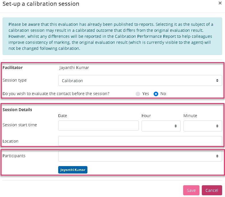 On clicking Calibrate, you'll be directed to the following pop-up where you add the details of the calibration session.