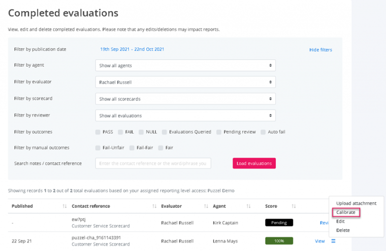 By following the navigation prompt, you'll be taken to the following screen where you'll be able to select any previously completed evaluation to evaluate.
