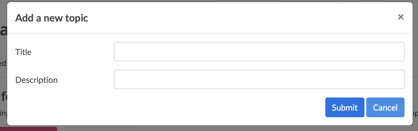 The system includes a number of default topics and/or you can also configure your own set of general feedback topics by simply clicking the Add general feedback topic button to reveal a pop up window requesting the title and Description of the topic.
