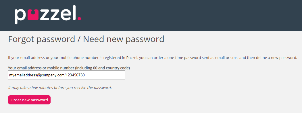 Enter your email or phone number which is registered on your user and a one time password will be sent either by email or sms depending on what you enter. Please note that you cannot log in with the one-time password.