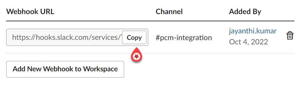 6. A new Webhook URL will be generated. Copy the url to the clipboard to use it in Puzzel Case Management.