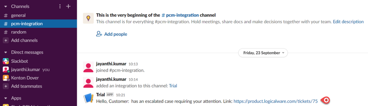 As a supervisor, I would like an alert in Slack channel when an agent assigns a case directly to me. This will help me navigate to Puzzel Case Management through the link provided in Slack.
