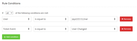 In the above example, I would create an event rule with a condition which looks as shown below. In the ‘Rule Actions’, select the webhook and the schema which should be used when the conditions of my rule are met.
