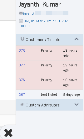 VVed å klikke på initialene, åpnes et vindu som avslører kundeinformasjon som f.eks.: