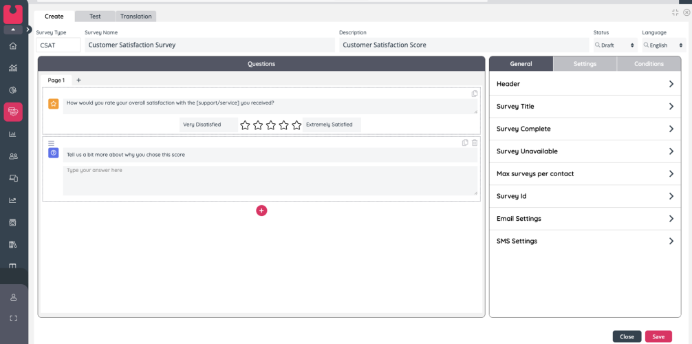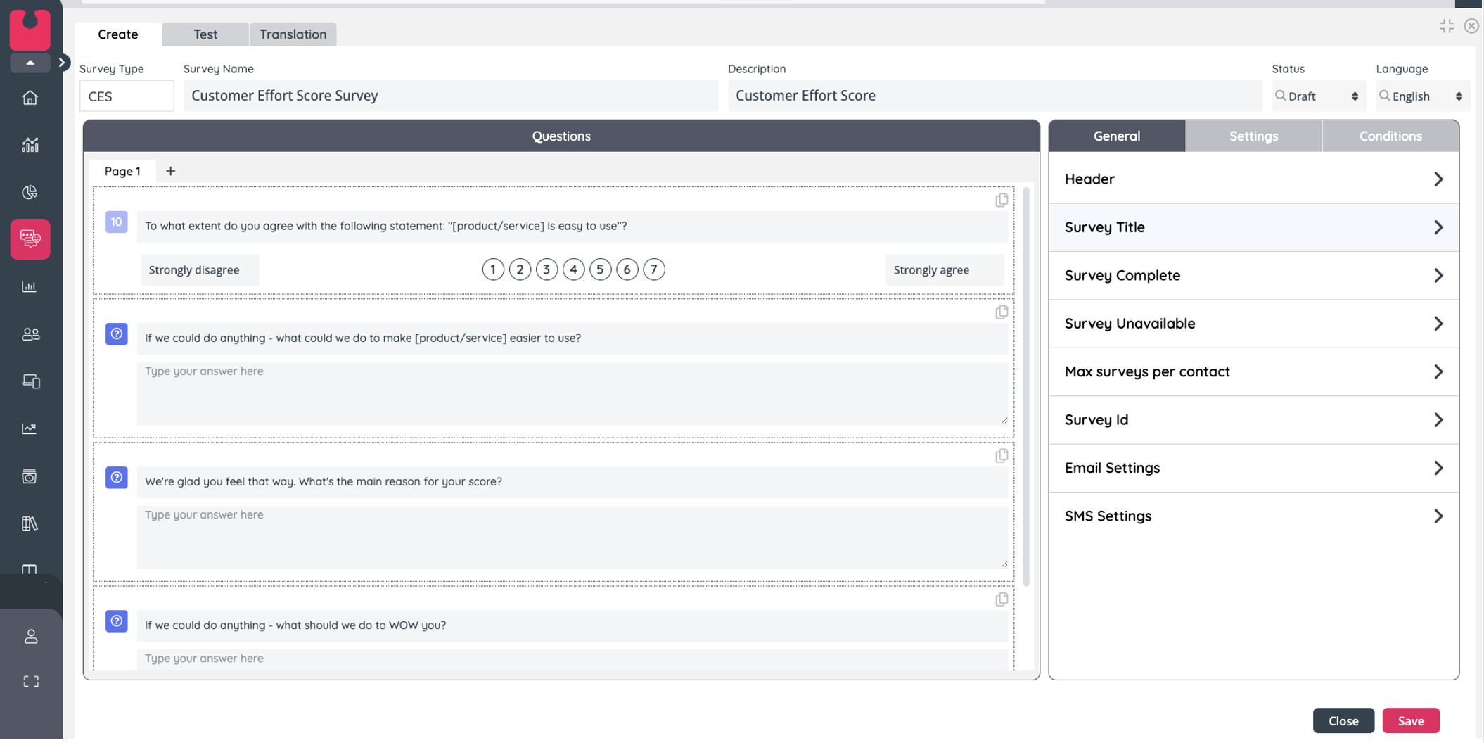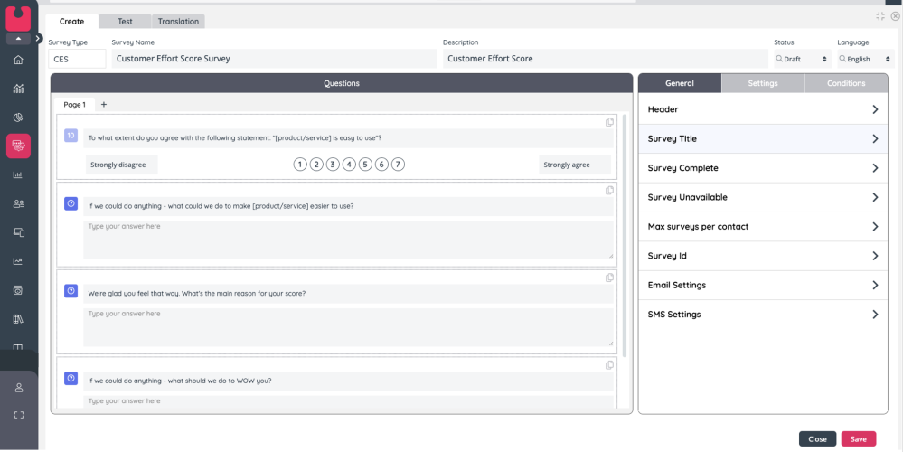The templates are populated with questions and answers that include sample text, which can be modified to suite your needs. For all suggested templates you can also add any additional survey elements by clicking the plus button at the bottom.