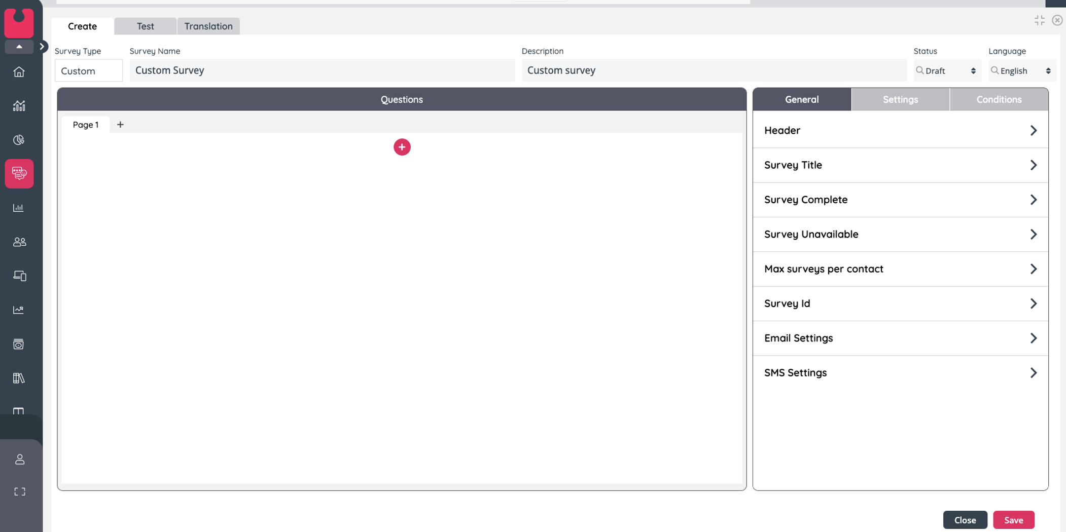 If none of the templates fit the survey you want to create, the Custom option allows you to build your own.