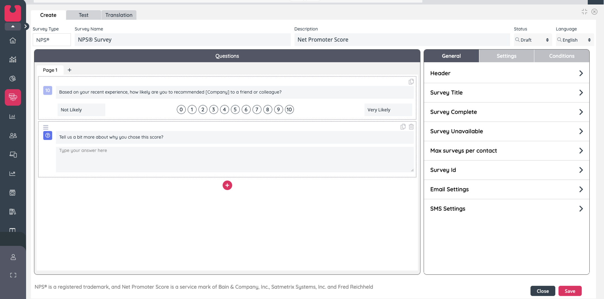 Net Promoter Score (NPS®) is a market research survey used to ask respondents how likely they are to recommend a company or product to someone else. This is typically used as an indicator of customer loyalty.