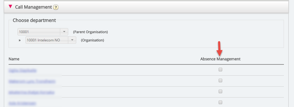 Nadat u “Organisatie” hebt gekozen, vinkt u de contacten aan waarvoor u gesproken afwezigheid wilt activeren