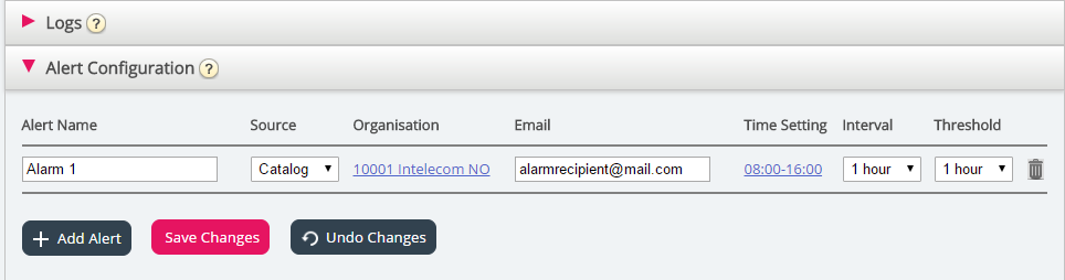 - Interval: Hoe vaak de waarschuwing zal worden verzonden zodra deze is getriggerd. Het systeem zal waarschuwingen blijven versturen tot synch weer data verstuurt.