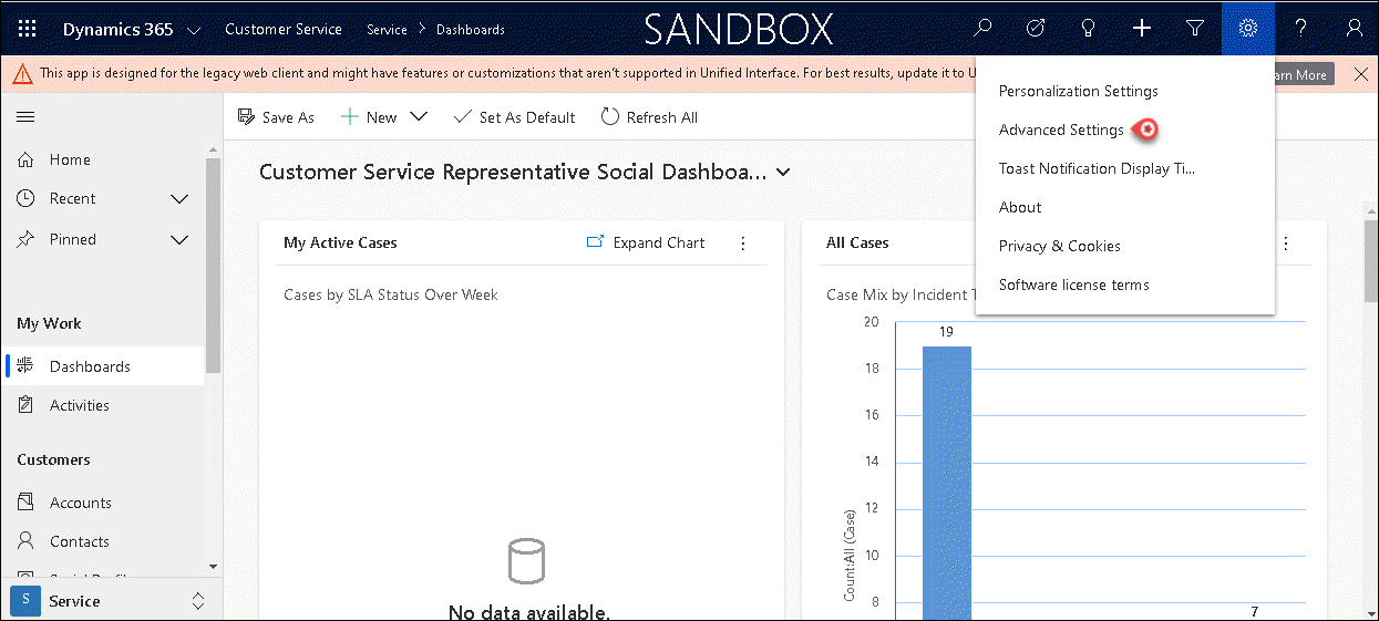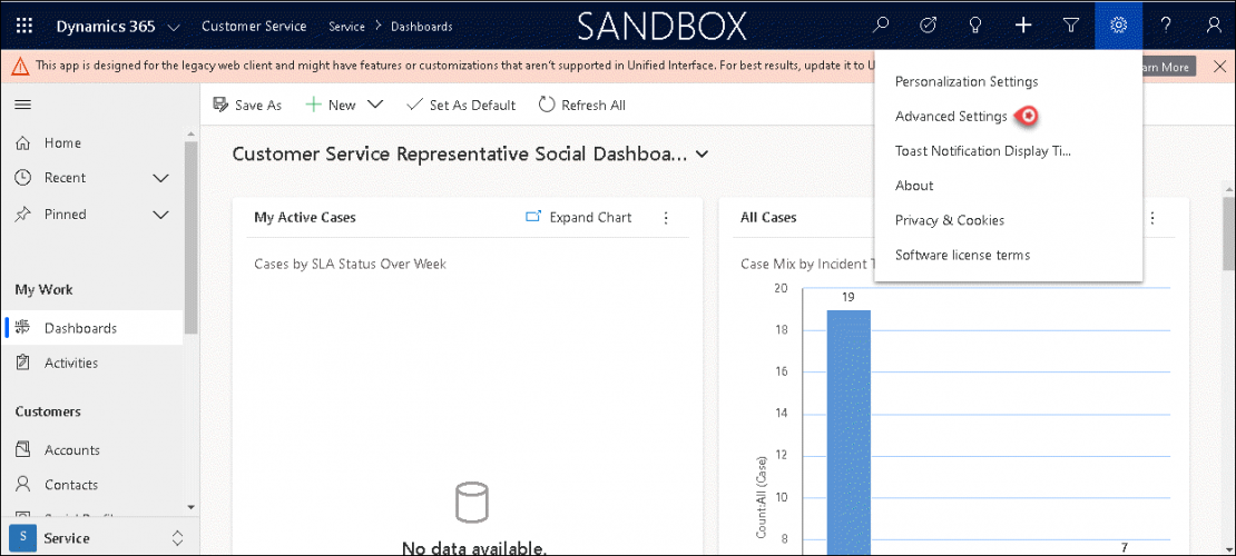 - Click on the Settings icon in the top toolbar on the right corner of your screen and select Advanced Settings