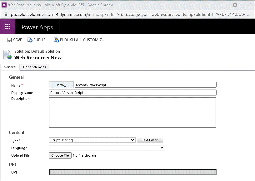 Add script to Dynamics Web Resources