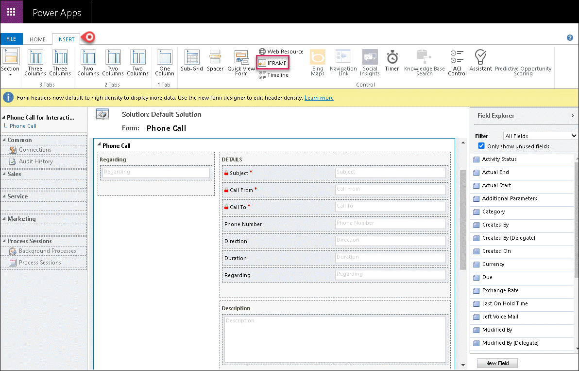 Do the following to customize the Phone Call form: