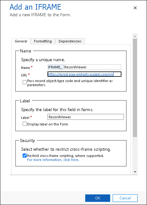 Value Name IFRAME_RecordViewer URL https://prod-paa-widgets.puzzel.com/crv/ Label Record Viewer - In the top menu, select the Home tab and click on Form properties option.