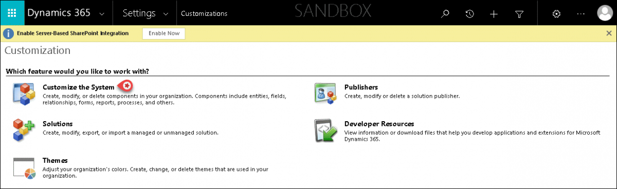 - Click on Customize the System option to open the Power Apps window