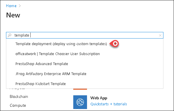 - Create a new resource template of type Template deployment (deploy using custom templates)