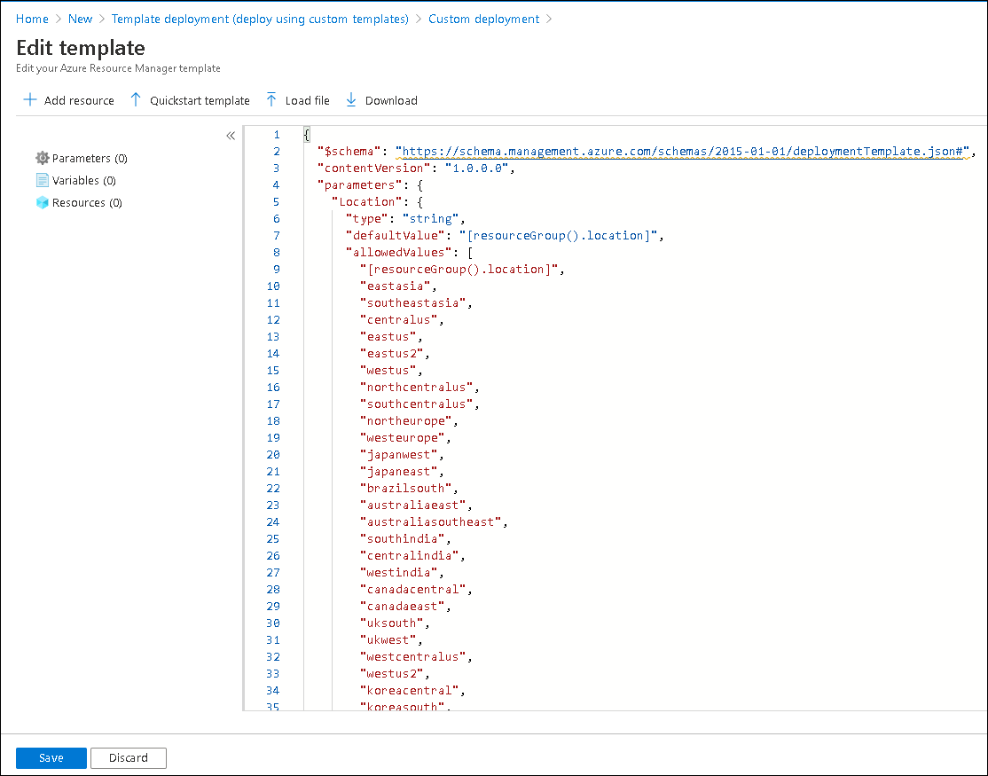 This section describes the process of creating a resource template in Azure that defines the resources you will need to deploy for your solution. To create a template: