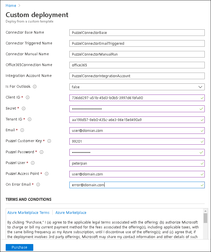 | Secret | The secret value for Puzzel Office 365 Connector app created in section 3 |