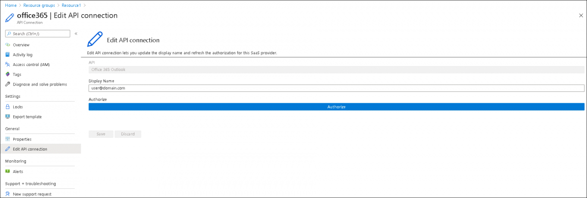 - Select Edit API connection from the left menu and click on Authorize. In the sign- in popup screen, login with the email credentials from which the messages must be triggered