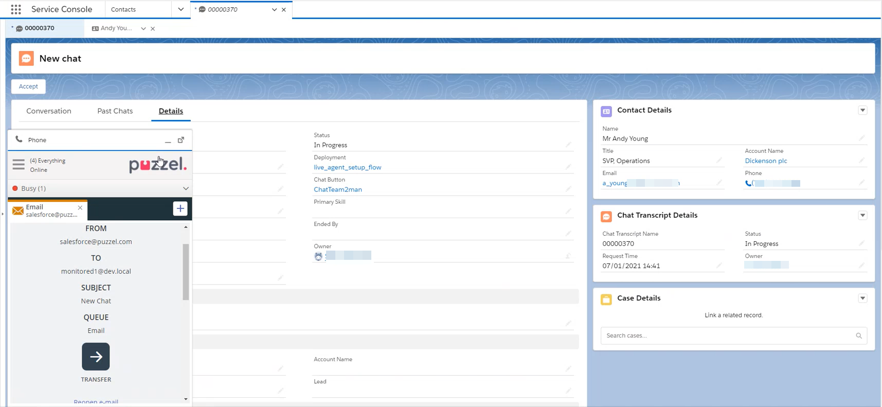 Puzzel-Salesforce integration is further strengthened by directing the Salesforce chat sessions through Puzzel expert routing mechanism which can dramatically lessen resolution times and increase customer satisfaction.