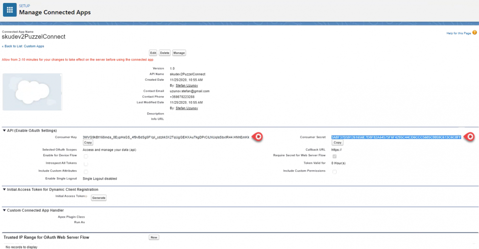 - Note down the Customer Key and the Secret. You will need to provide this to Puzzel. [See the last section of this article]