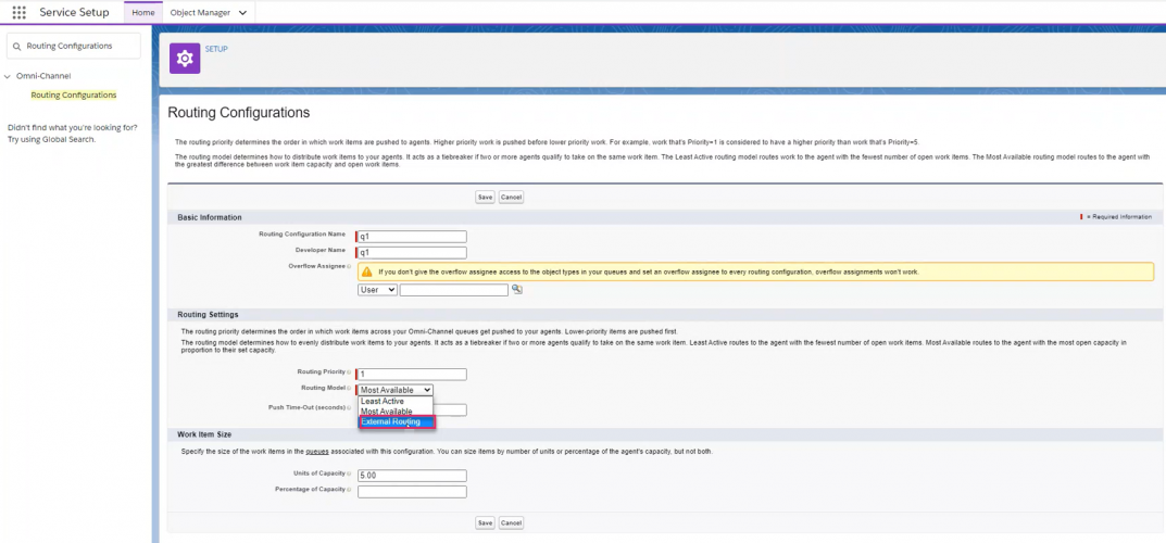 - Search for Routing Configurations in the quick finder and click on Edit.