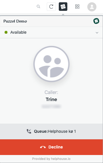 When a call comes in, you are presented with a view displaying the name and phone number of the caller. From this view, you can Accept/decline the call.
