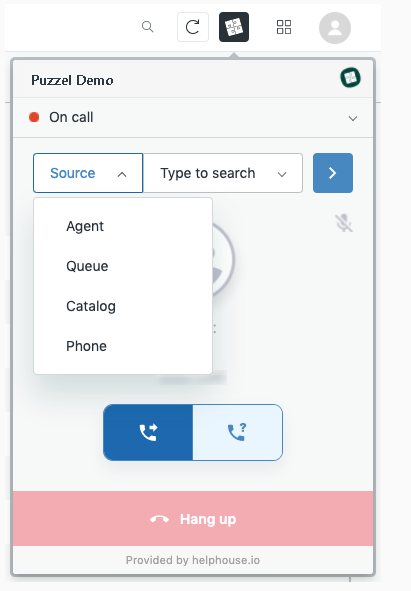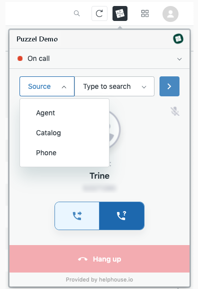 To end a call, click the “Hang up” button. The call will also end if the callee hangs up. Whether it is you or the callee who hangs up, you will be presented with a wrap-up view.