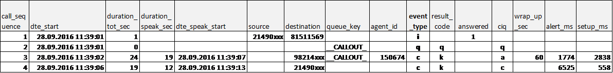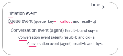 - a Queue event (in the outgoing calls queue, which usually has queue_key prefix ‘__Callout_’) with result=q.