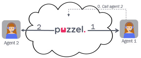 If a Puzzel agent wants to make an outgoing call through Puzzel, the agent can enter a phone number or select a catalog entry in the Puzzel agent application and click “Call” (or agent can click-to-call from another system that uses Puzzel web-services). This usually results in one answered call from the Puzzel platform to the agent (a conversation event with ciq=a and destination = agent’s phone number) and then one call to the destination number (a conversation event with ciq=c and destination = the called number), answered or not.