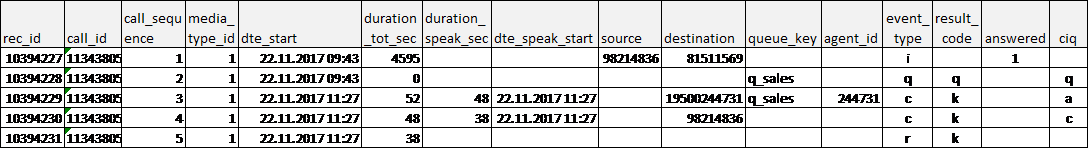 If an agent or an administrator deletes an ordered scheduled call before the scheduled time, a new queue event with result=d (deleted) with the same call_id is created.