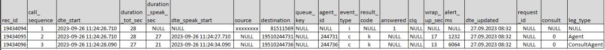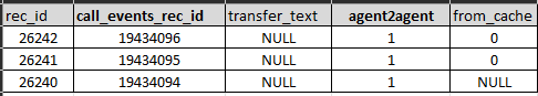 The agent-to-agent call in the example above will result in these 3 records in table call_event_extras: