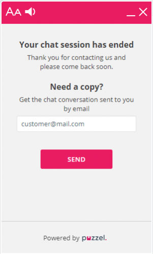 If you want to minimise the dialog at the end of the session, you can set up the chat solution to skip the goodbye page that appears when the chatter ends a chat. With this feature turned on the chat session is ended “automatically”, given that the chatter has entered his email address in the initial phase of the chat.