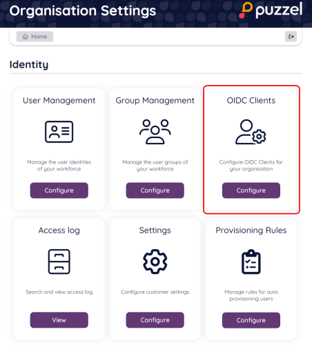 From the Organisation Settings home page, navigate to the “OIDC Clients” section using the navigation icon as highlighted below: