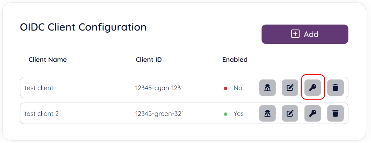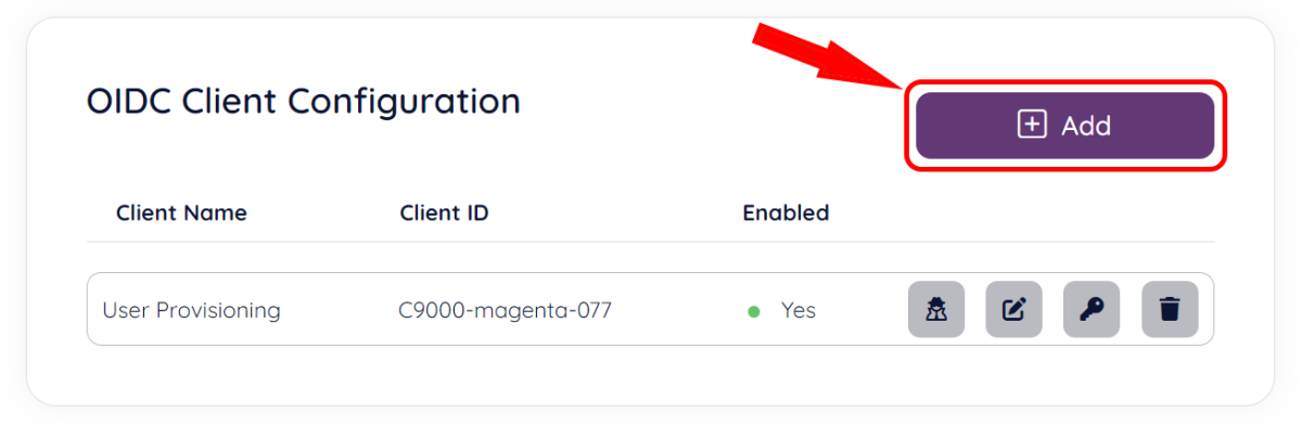 To create a new client click the “Add” button from the “OIDC Clients” section main page: