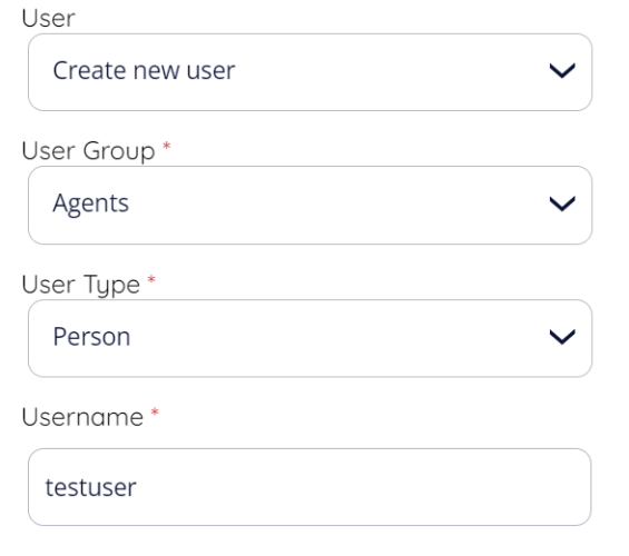 You also need to select the user type, the following options are available: