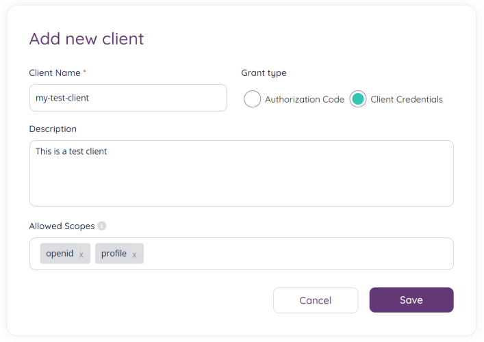 - Description: Add a description for your client