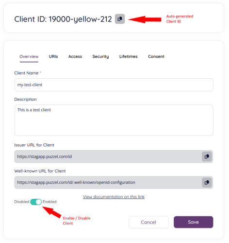 - Client ID: The client ID is an auto-generated value which is a unique identifer for your client. Click the copy button to copy the client id to your clipboard.