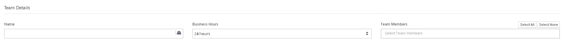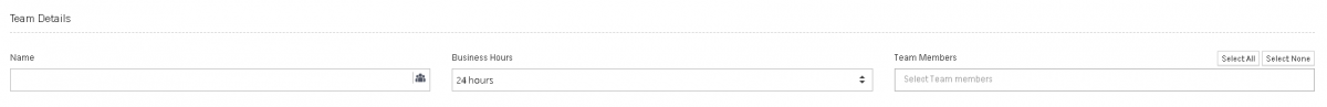 | Team Members | Click in the Select Team members box to be presented with a list of all Users in the Account. To make it faster to add users there is the option to Select All (adding all setup Users) or Select None (removing all included Users). A User should be in a Team to access and work Tickets assigned to that particular Team |