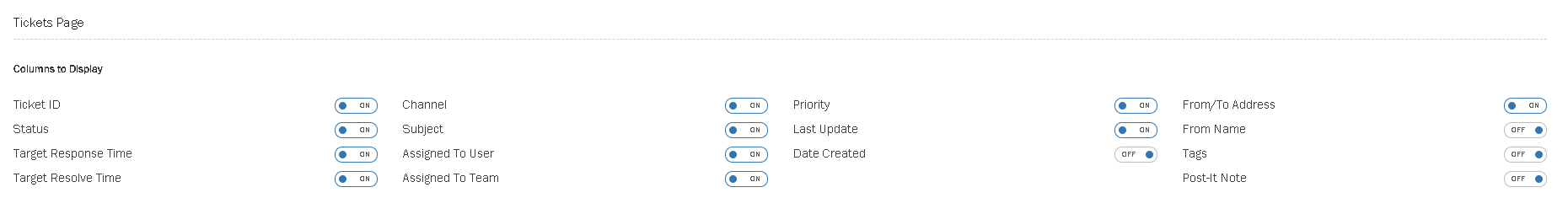 Columns to Display under Tickets Page is a section where you can choose the columns you want to display in the Tickets Page.