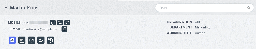 Both the phone and email information can be copied to the clipboard by clicking the  icon next to it