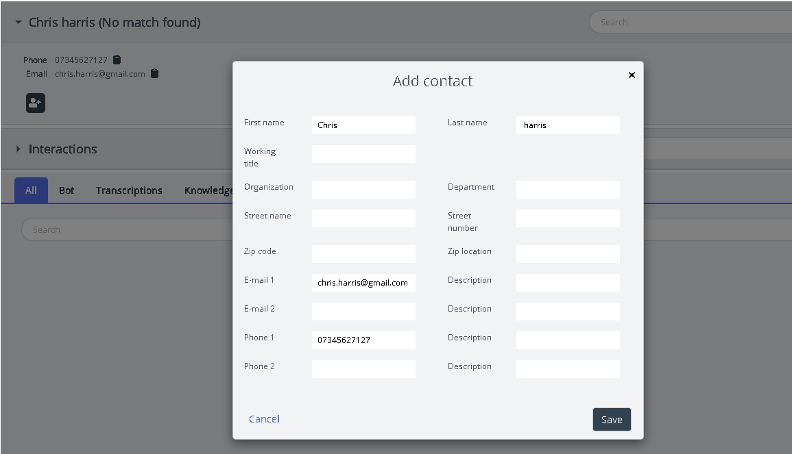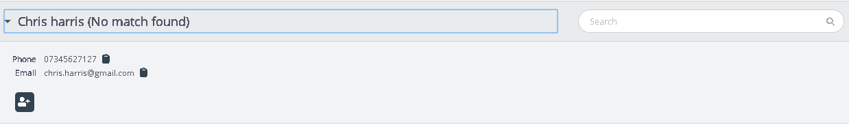 3. No contact match: The phone number/ email id that the customer is using to communicate will be listed along with the interaction history of the corresponding number/id. No match situation arises when the contact card does not exist, or it has not been imported properly.
