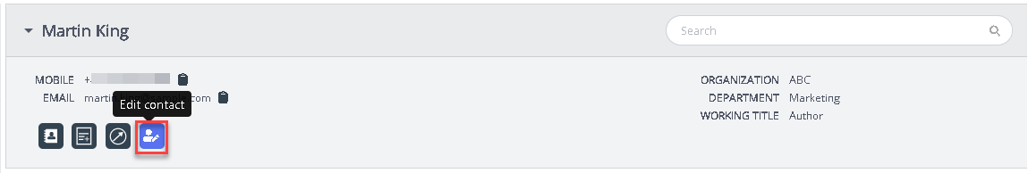 To edit the existing contact card information, click on the Edit contact icon as shown in the picture below.